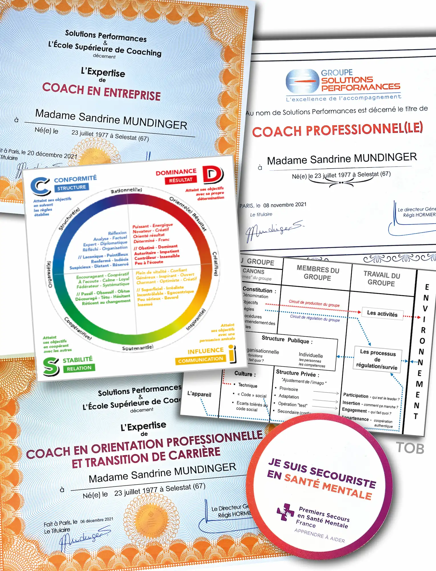 Je suis certifiée DISC (Ensize ©) et Secouriste en Santé Mentale (PSSM France).